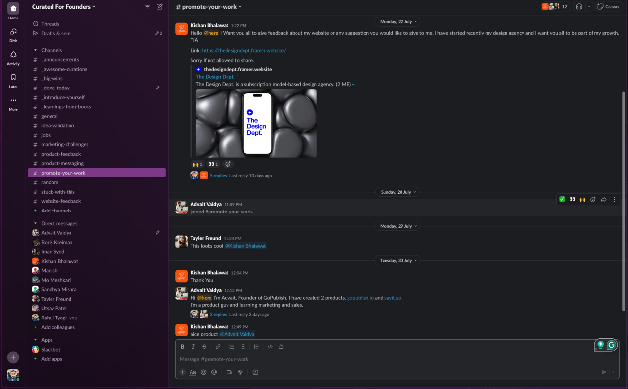 2. We have about 12 founders who joined our community recently and it’s starting to take shape.